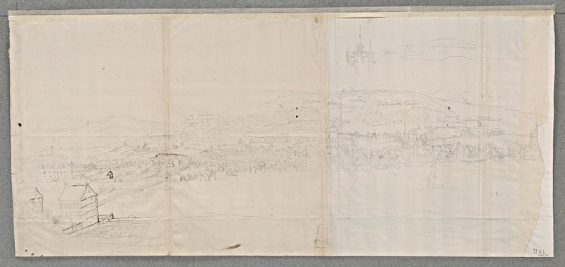 Handritad förlaga till: Perelle, Adam Stockholmia Metropolis Regni Sueciæ, et Sedes Regia qua parte Occidentem spectat 1669 [Libris:8426158]